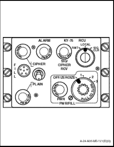 Electrical power of 28 VDC for the KY-75 secure voice system is obtained from the DC primary bus through a circuit-breaker on the radio circuit breaker panel marked “KY-75”.