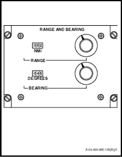 The RANGE AND BEARING control panel (Figure 1-11-4) provides positional control of the bearing cursor and range strobe on the azimuth-range indicator. Two controls and two counters are mounted on the control panel face; their functions are as follows: