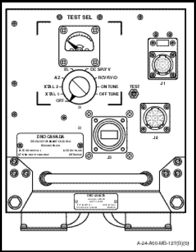 b. The TEST control is a spring-loaded pushbutton which is operated in conjunction with the ON TUNE or OFF TUNE position on the TEST SEL switch. It deliberately off tunes the IF frequency causing the AFC circuit to recycle to the required frequency. When the TEST button is depressed the meter should read approximately 10 microamps greater than the meter reading indicated with the switch released.